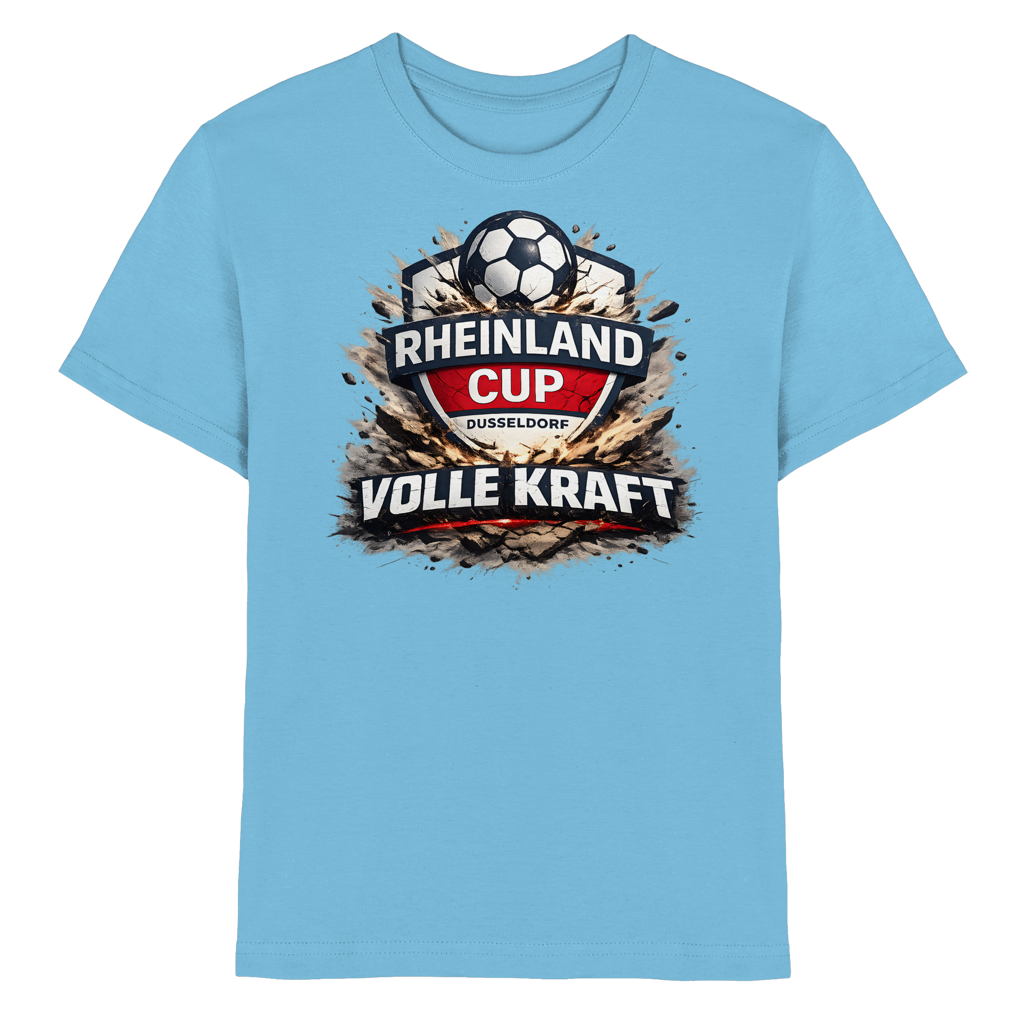 Let your child's love for football shine with the Rheinland Cup Düsseldorf Volle Kraft - Kids Premium Shirt. Featuring a dynamic soccer ball explosion design, this shirt is a celebration of energy and enthusiasm.